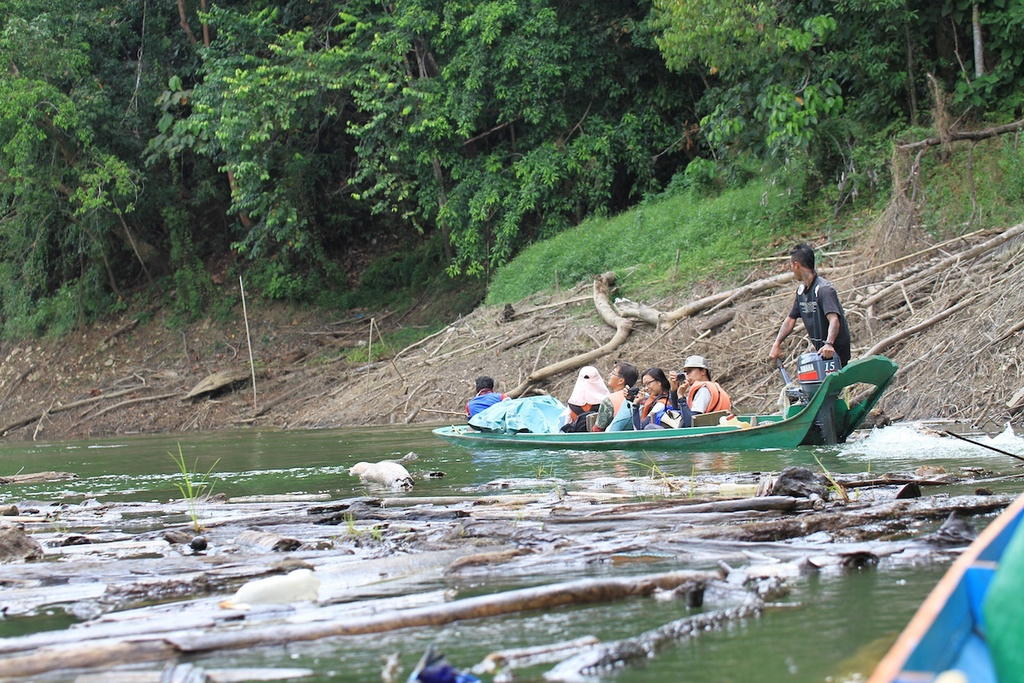 在一個晴朗炎熱的早晨,我們從古晉出發坐了4.5小時的巴士後,終於抵達東馬來西亞南端的峇當艾水庫(Batang Ai)。雖然感覺有點兒疲累,但是真正的雨林之旅,要等小花坐上長舟之後才開始呢。咦!最前面的風景被恐龍擋住了,不過沒關係,河流清澈又彎又長,山雖不高但林木蒼綠,鳥鳴啁啾時隱時現,只要換個角度看,每一處河流的轉彎都有好風景,我們隨著長舟搖晃的節奏,發前往目的地烏魯艾 (Ulu Ai 囉。