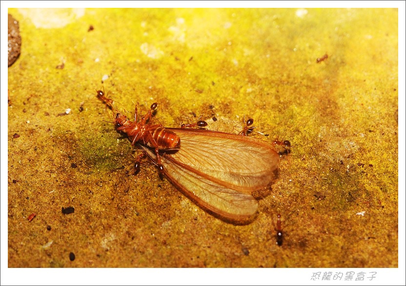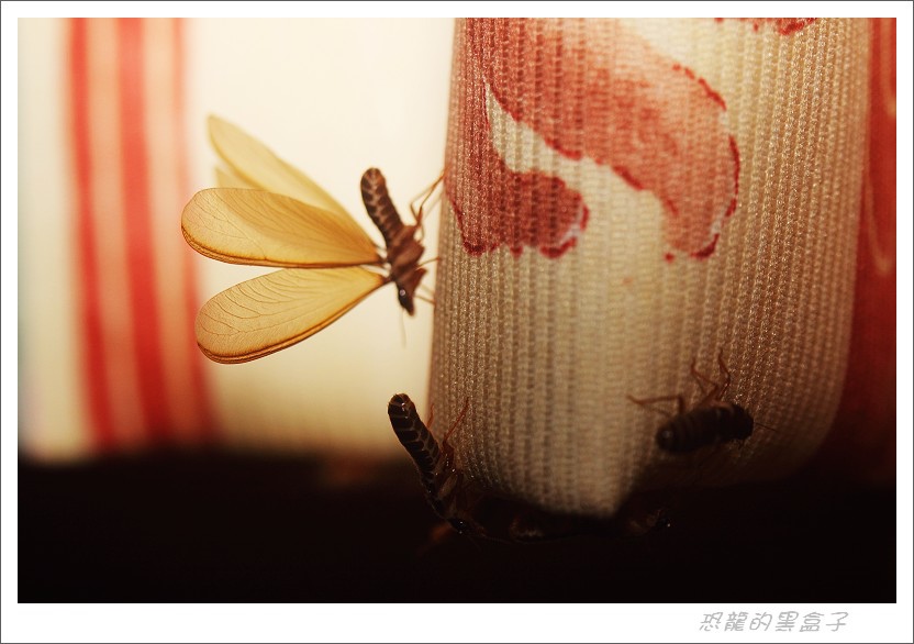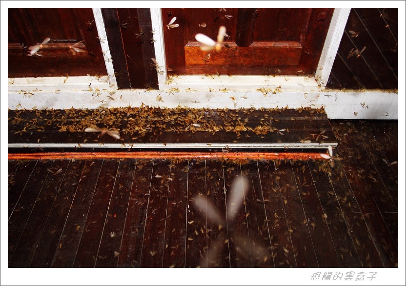 打開燈一瞧乖乖,怎麼整間屋子靠窗的地板上都是掉落的翅膀,床上地上則是四處亂竄的白蟻,我正納悶旁邊睡的那人為何完全沒有反應,一看竟然全身包裹著床單像個木乃伊,怪不得絲毫不受白蟻影響繼續酣睡。