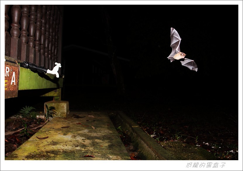牠們不斷地來回穿梭,低空獵食,完全無視於我們的存在。難得有如此近身飛行的蝙蝠,當然得嘗試捕捉他們的身影,將焦距固定在廣角端,焦點約在前方1米處,開始盲拍起來,忙了半天總算抓到幾張還看的過去的照片。