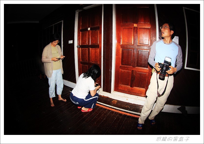 我在屋外不多久就被蟻群附身,只好一面驅趕一面拍照一面還要呼喊琥珀起床,鬼叫聲和閃燈的光線吵醒了隔壁同團的2位女生,他們在屋內竊竊私語還以為來了個偷窺狂。