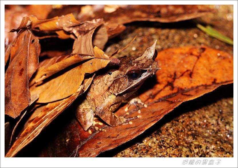 觀察者若採取低角度,較能再一片溪石枯葉間看出角蛙隱身的破綻。