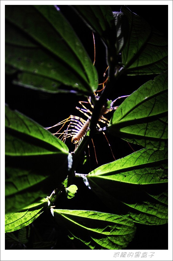 約有15公分長的巨大蚰蜒正靜靜的守候準備隨出擊。