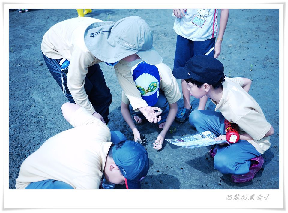 帶著一群興奮的小朋友從海山漁港旁下去溼地,先看到一大片沙灘和密密麻麻沙球排成的陣列,在這裡先把規則和方法說了,如何在不影響好奇探索和尊重生命之間取得平衡,方法很重要,不傷害德狀況下可以抓來觀察,但是不能帶離牠原來的棲地,因為沙灘泥灘各有不同,其中的變化必須他們去體會。確定每個人都清楚了,剩下的就是直接體驗不多說。