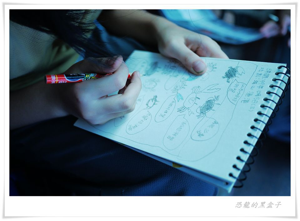 用完餐後,早上的觀察所得開始變成一篇篇的大自然筆記,有人認真地查圖鑑,有人細心地繪圖,透過手的抓取觸摸,再透過手描繪記錄出來,一點障礙沒有。