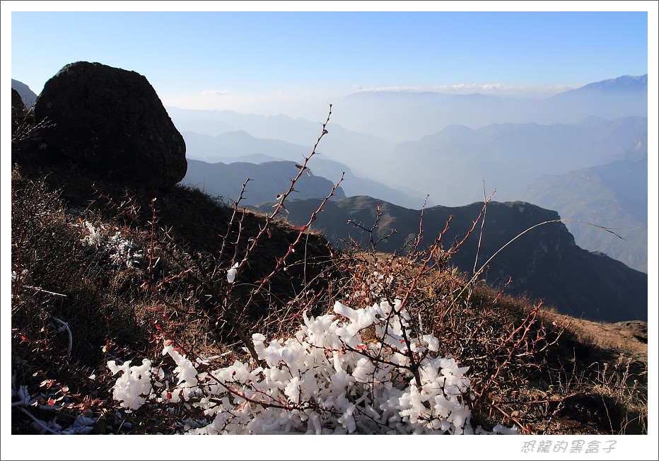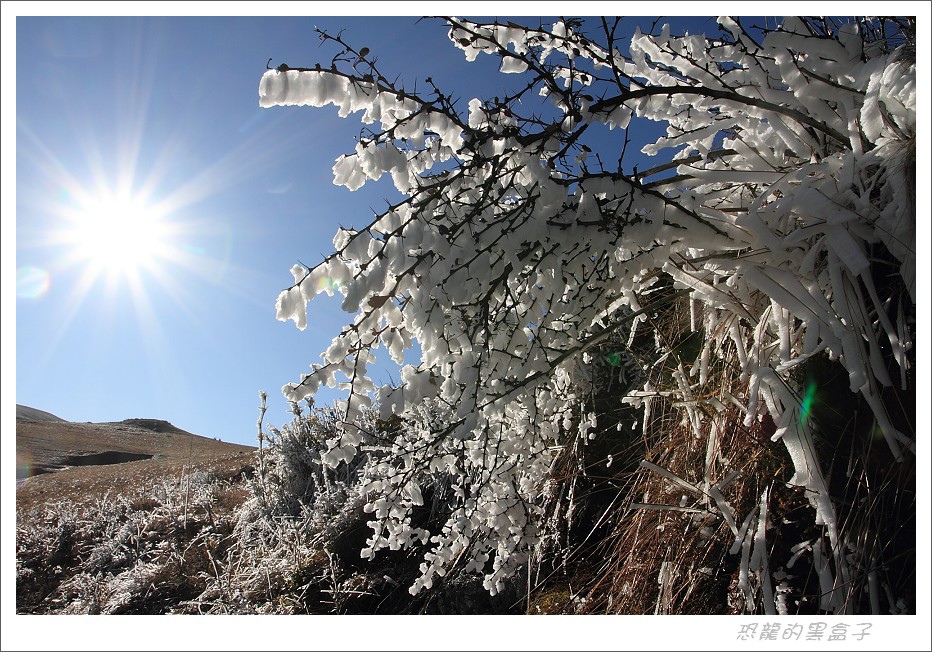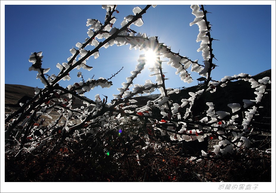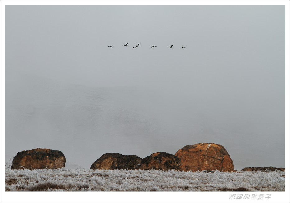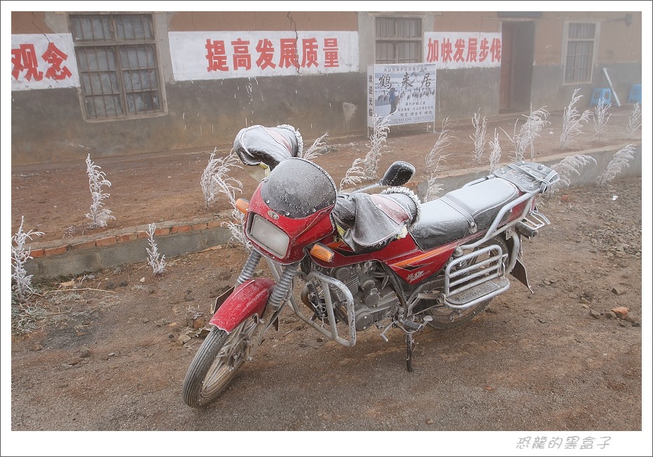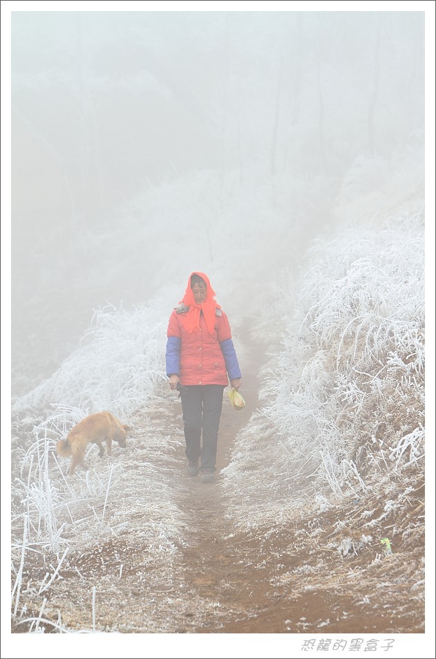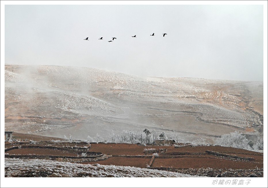 大霧瀰漫的早晨無法拍鶴,但是附近村莊的霧淞冰掛滿數銀花景象彌補了這個空檔,這是大山包的特色景觀之一,不過等到陽光乍現呈現出最戲劇性的一刻之後,就逐漸消融不見,美景是不等人的。