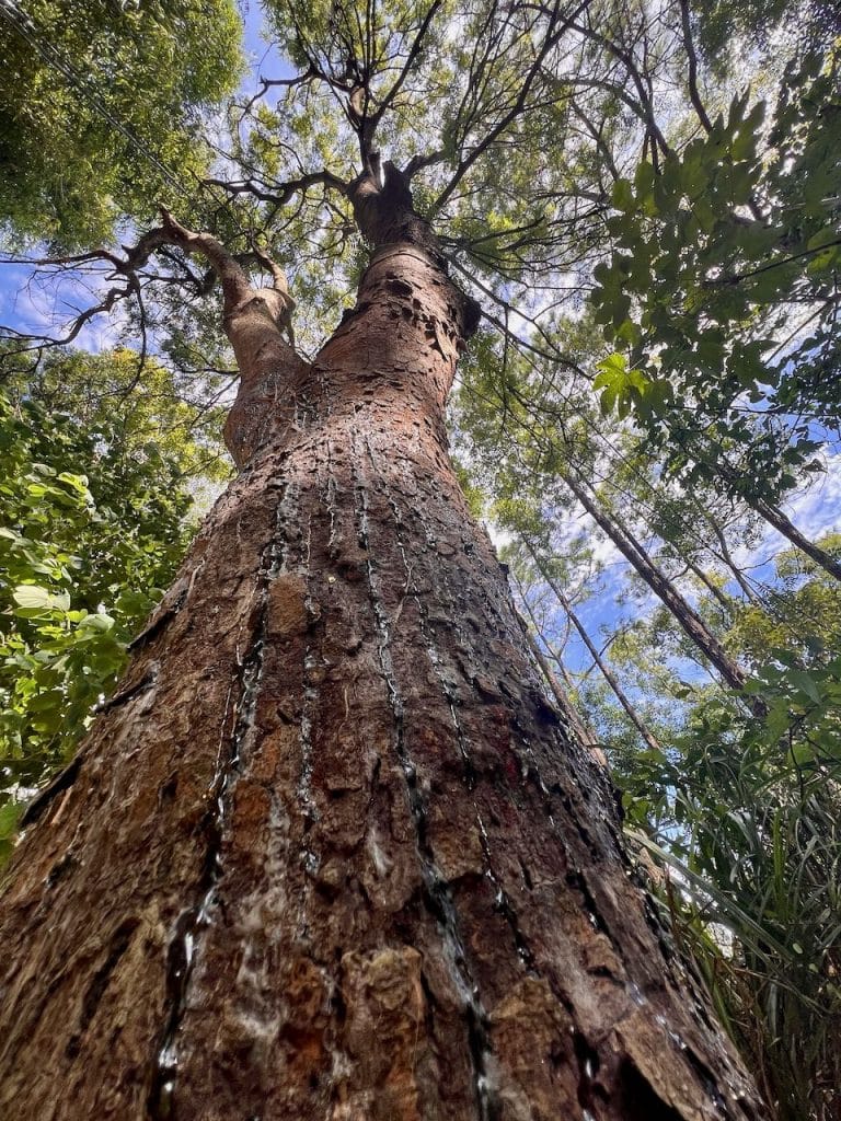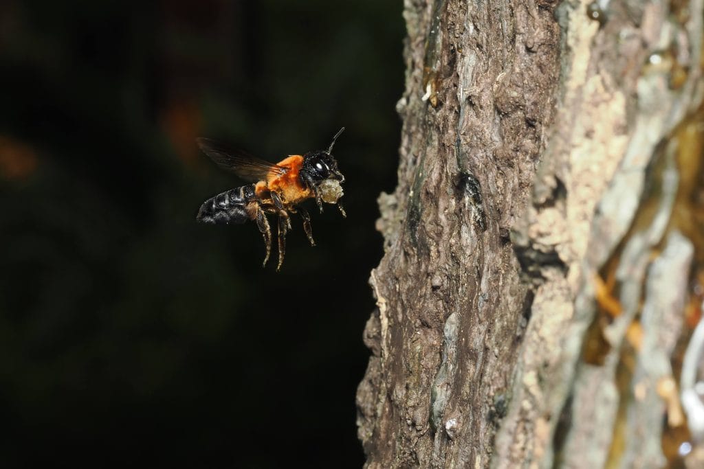 九月下旬因為帶活動的關係作探勘時,在柯湖步道的入口發現一棵流淌著樹脂的黃連木大樹,因此展開了一個多月的觀察,總共紀錄到3種獨居蜂前來採集樹脂,是我們觀察獨居蜂生態四年多以來,第一次在野外觀察到採集樹脂的行為,算是一大突破。