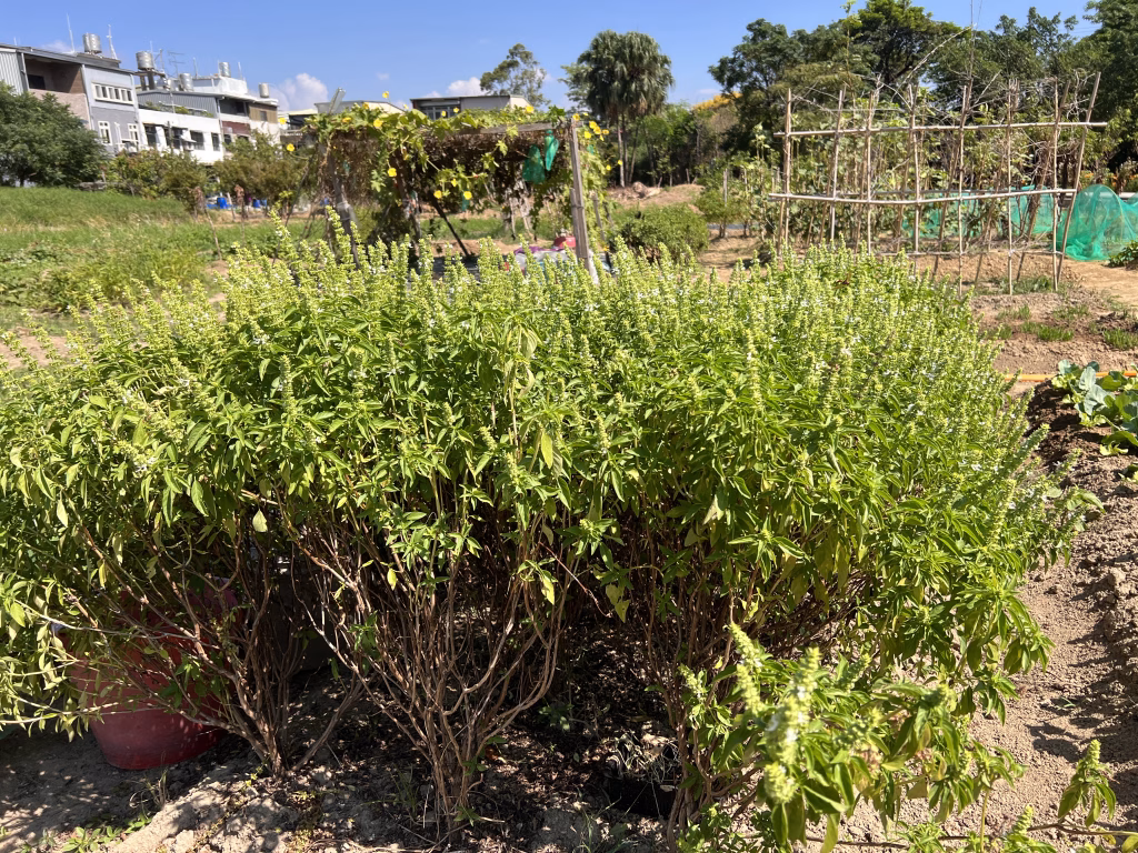 不過我們種植九層塔的目的不同,必須保留花朵,為的不是為了給我們欣賞,而是為了吸引來訪花的蜂兒們,觀察他們吸蜜採粉的有趣行為。