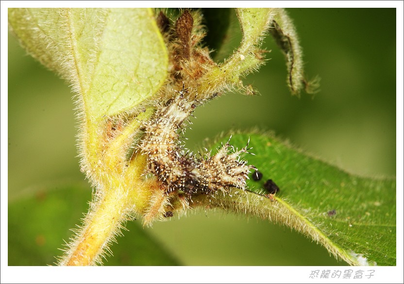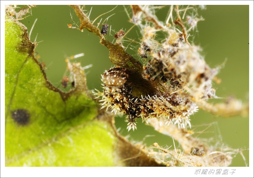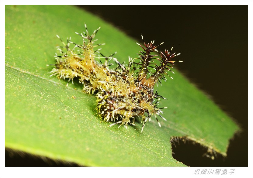 初齡到四齡的紫單帶蛺蝶幼蟲頗為低調,利用糞線的偽裝和肉刺的擬態讓人無法輕發現。