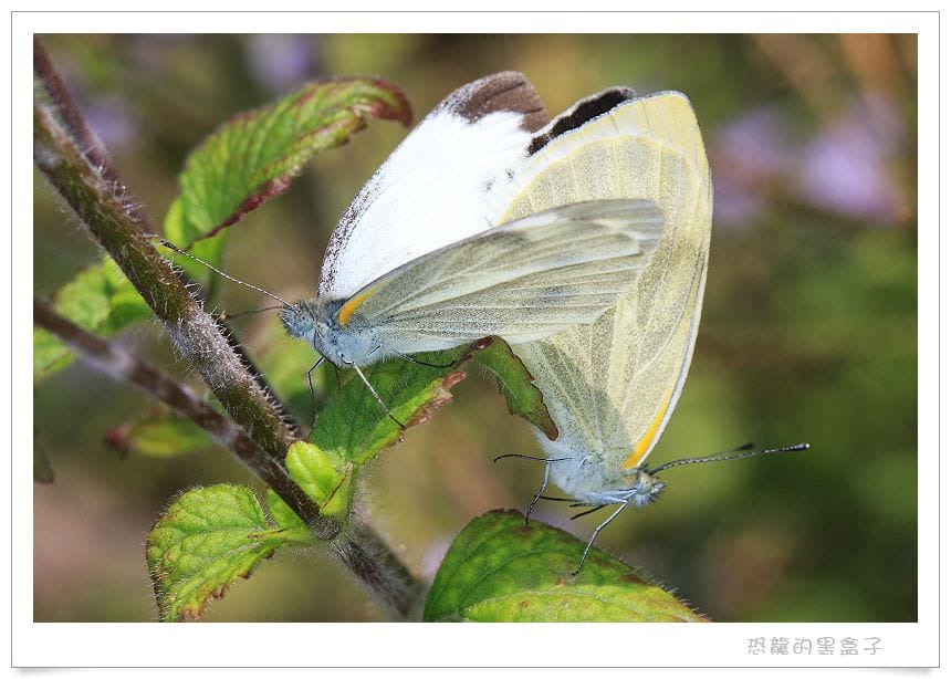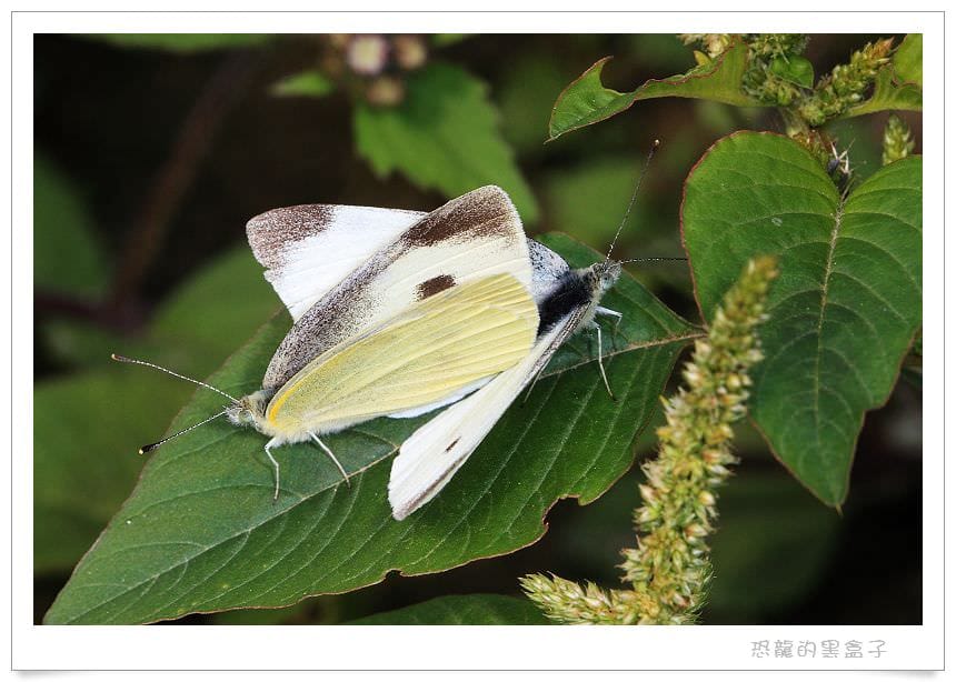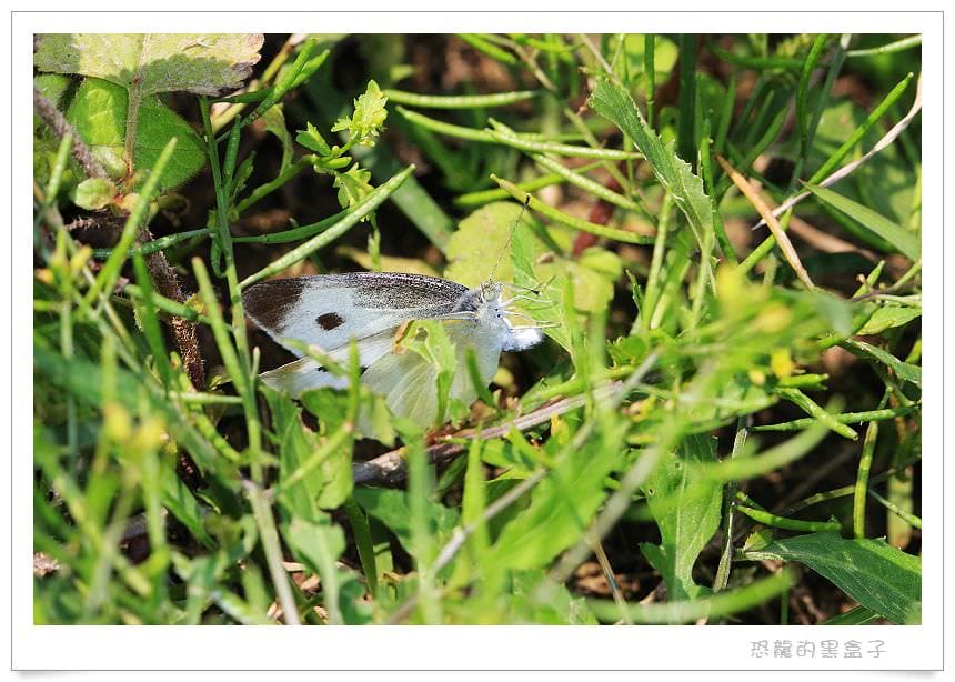 發現一隻母蝶在某種野草葉下產卵,不時還有路過的公蝶前來騷擾一番。