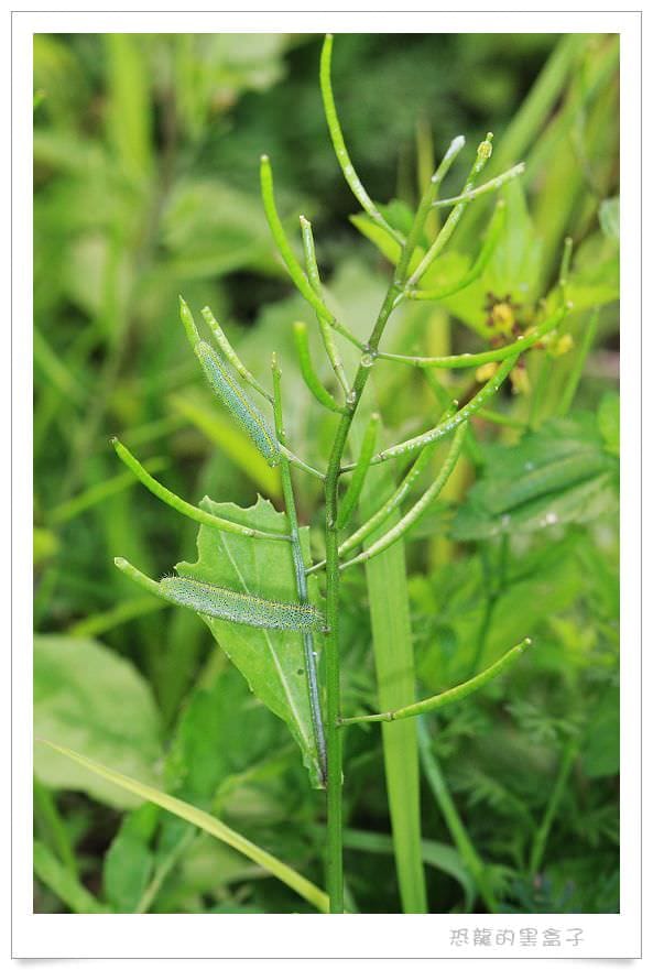 綠色的果實上還有紋白蝶的幼蟲躲藏,乍看還不容易發現。