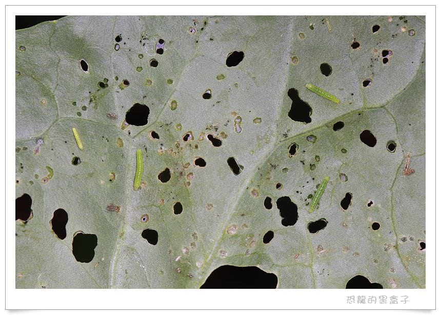 綠色的果實上還有紋白蝶的幼蟲躲藏,乍看還不容易發現。