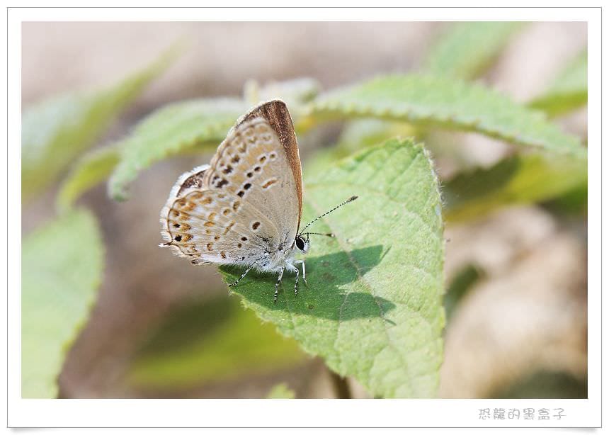 蝶的數量隨著溫度而上升,一種非常小型的蝴蝶像1/16音符般地跳躍著,我遠遠地拍了一張,心臟撲撲急跳著,是「巒大小灰蝶」,不知道為什麼這個名字由腦海中浮現,雖然我從來沒見過。大 約有半個鐘頭,我和牠就保持著這種相敬如賓的距離,只要踰越雷池一步,接著牠就以1/16音符的節奏,不停在我眼前晃動。
