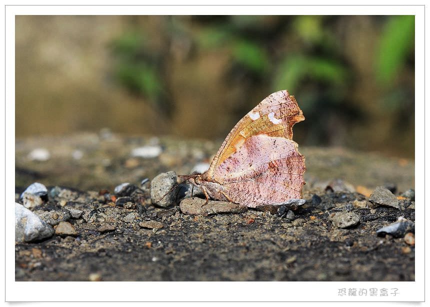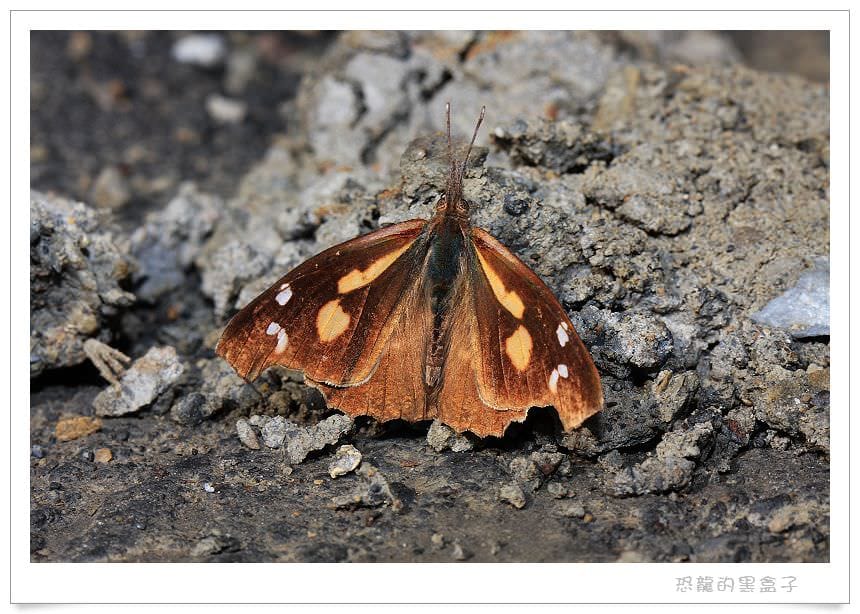 尖長呈三角形的吻端像極了狗鼻子,因此又叫「天狗蝶」。這可是隻視力超讚行動敏捷的狗,我稍稍移動接近,牠立刻竄飛不見蹤影。還好,不只一隻,我耐心地等牠停下來吸水。