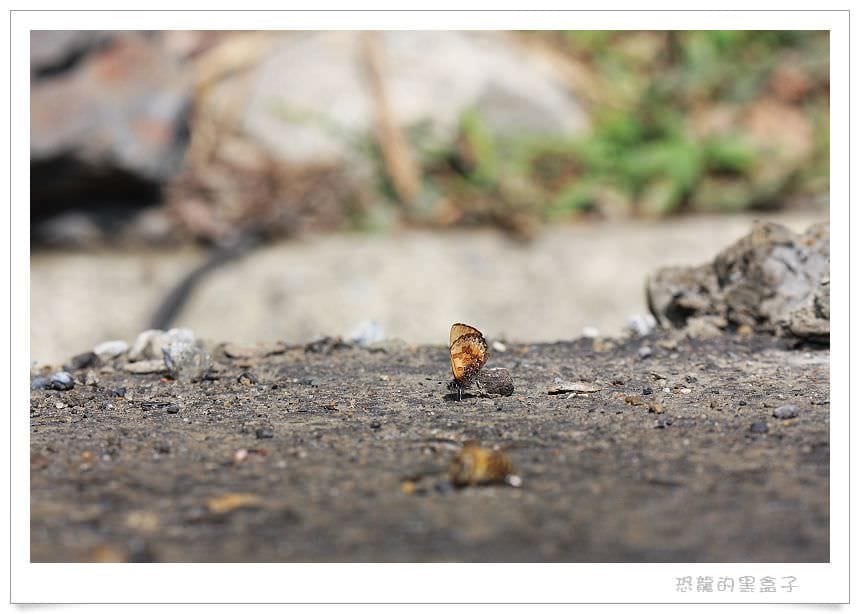 剛開始不知道效力可以維持多久,拼命按了三、四十張〈回家才知道自己當時的激動〉,慢慢地我倆都習慣了對方的存在,我才能仔細端詳這隻小指般大小的蝴蝶。銹紅色的翅腹上幾塊更深色的紅斑,還留了一臉絡腮鬍,最後被螞蟻給趕跑了。