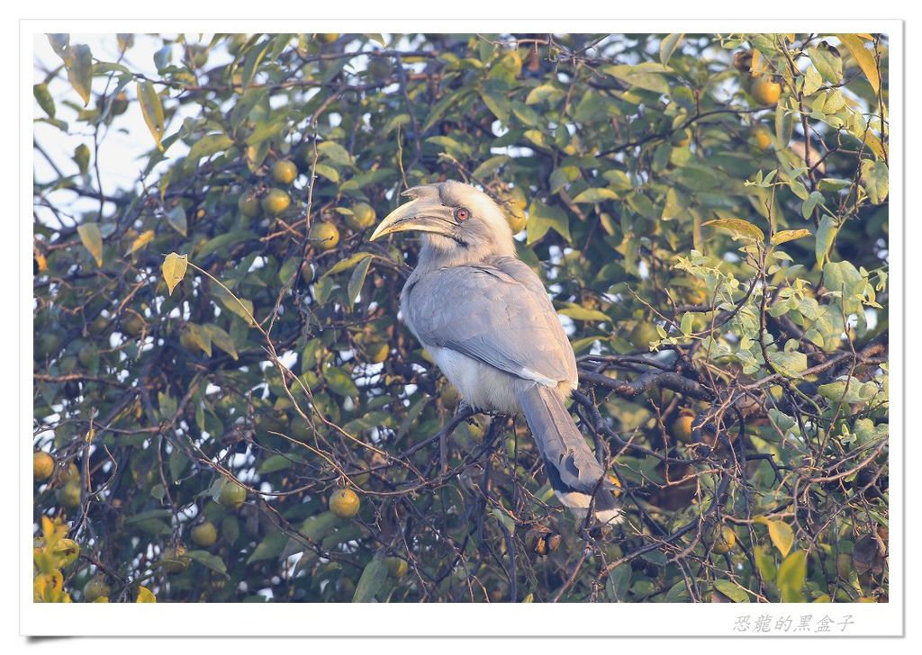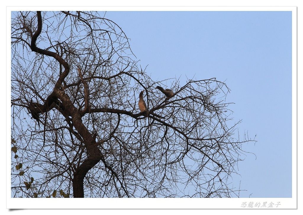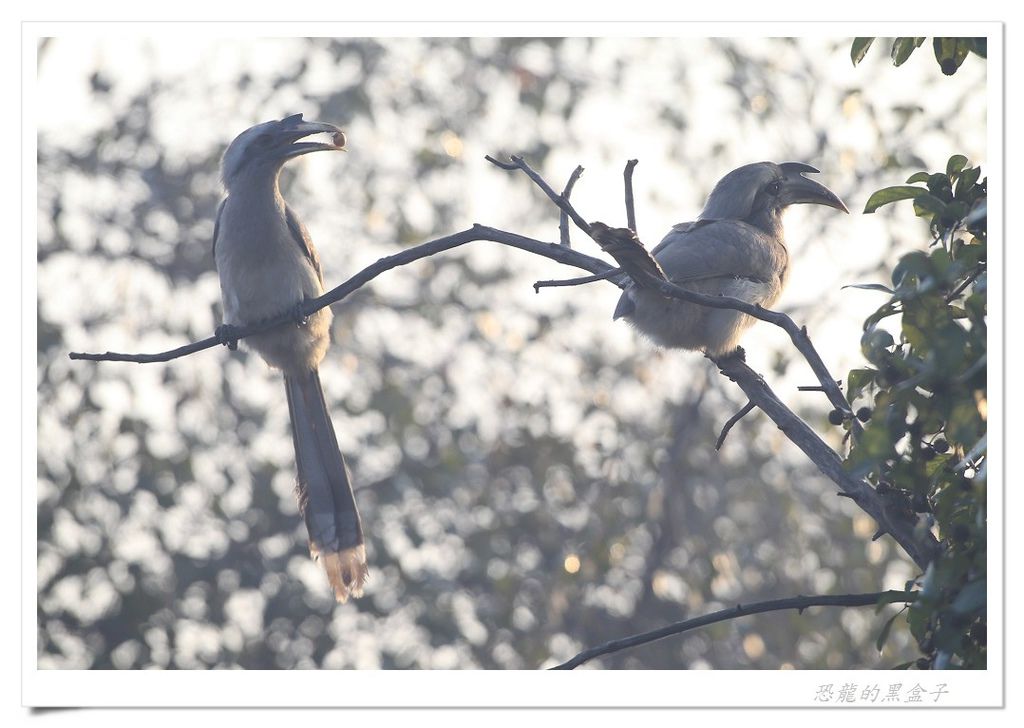 路旁兩隻灰犀鳥正在進食,粗大的嘴喙卻絲毫不影響他們進行優雅的送禮求偶儀式。