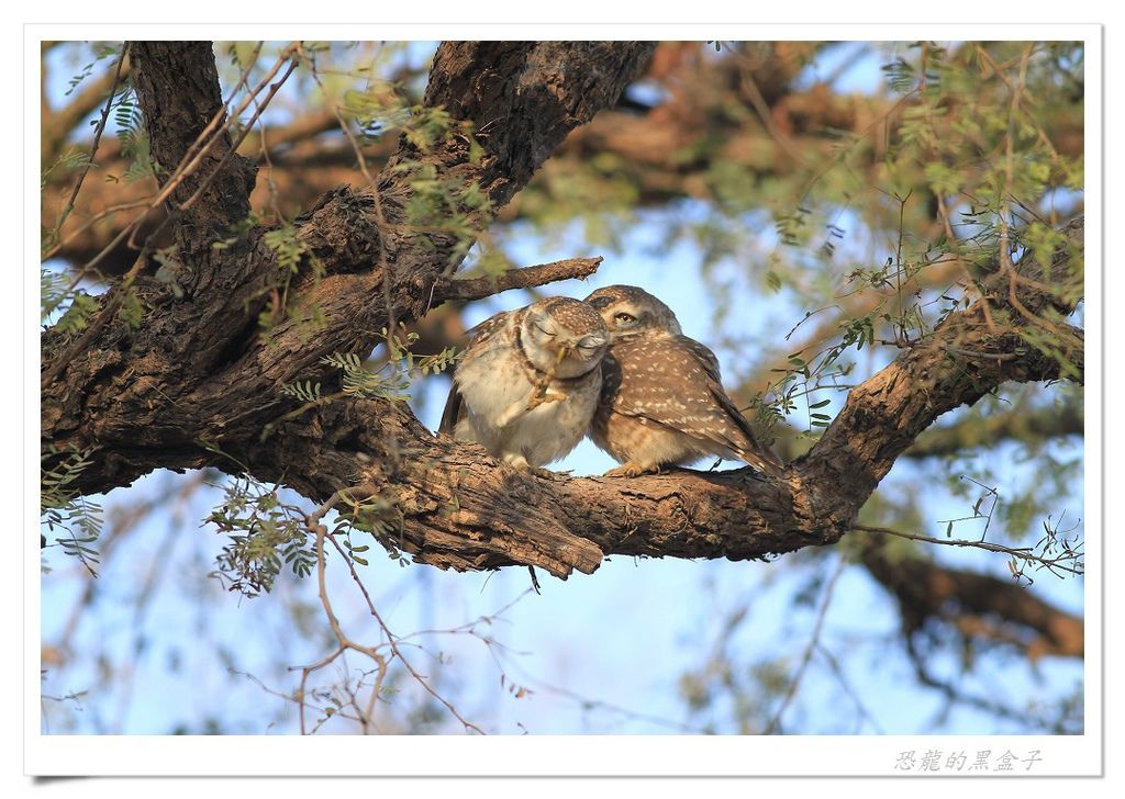 後來發現此種小鴞在園區內的數量頗多,不過保護色良好不易發現,因為白天時光他們大部分都在睡覺,因此多有固定的棲樹,久了車夫們彼此通報倒也不難發現。我喜歡用長鏡頭捕捉小鴞相互依偎的特寫鏡頭。