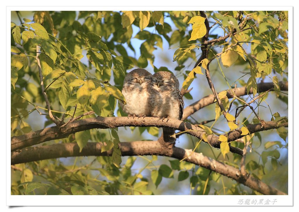 琥珀的鏡頭裡,一醒一睡的小鴞藏身在濃密的樹影下,也甚是可愛。