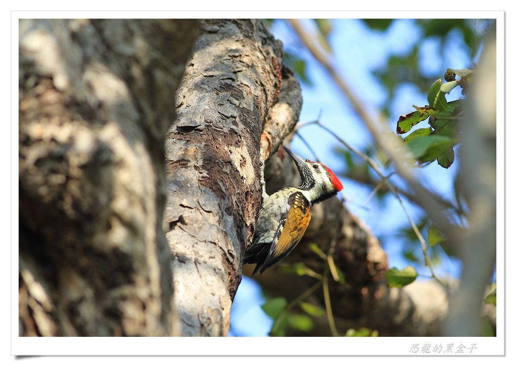 國家公園的中心除了大片的溼地沼澤之外,周圍沒有被水淹沒的地方則是枯樹林和大片乾旱的灌叢,因此適合不同習性的動物鳥類棲息。不過在林中找鳥頗費眼力,脖子仰的老高不久就累了,這時聽聲音是個比較聰明的方法,『扣、扣、扣』,一隻身著黃袍頭戴紅帽的小金背三趾啄木,意料之外地出現在很低的樹幹上,夫人的車夫趕緊指給我們看,不過頸子一時之間無法會意過來,待看到時已經錯失快門良機,不過等待他逐漸爬高到達有光線的地方時,一身金黃更顯高貴。