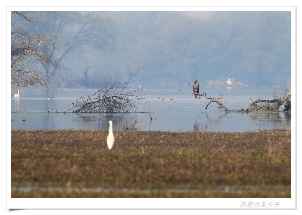 同團的夥伴裡有一位女生對猛禽特別有興趣,強力搜索的結果每天都有新發現,烏雕鴞屬於大型的貓頭鷹,築巢在水澤中獨立的大樹上,這次去發現兩巢,其中之一還育有小貓頭鷹,我們依照船夫的指示遠遠觀察,不敢太過接近。