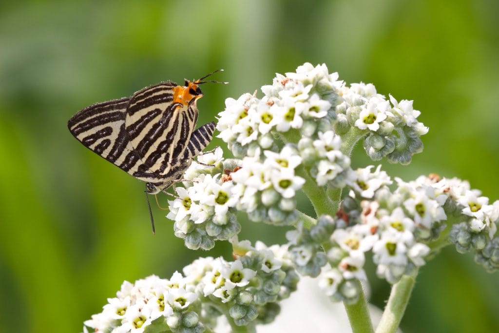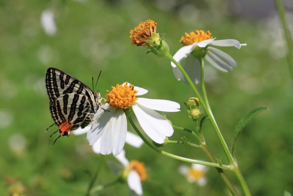 台灣雙尾燕蝶 Spindasis lohita formosana,又稱虎灰蝶,是台灣三種虎灰蝶中最常見的。分布於低中海拔,喜好棲息在較濕潤的樹林環境,並在林緣空曠處訪花。以前在北橫巴陵附近尋蝶時,每每看到路旁的大花咸豐草叢就會停下,而台灣雙尾燕蝶總是不會讓人失望,專心地訪花吸蜜完全無視於我們的存在,給予我們充分的時間好好取景構圖,拍得了滿意的照片才離去。