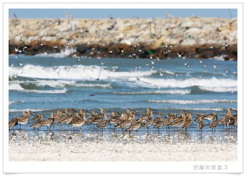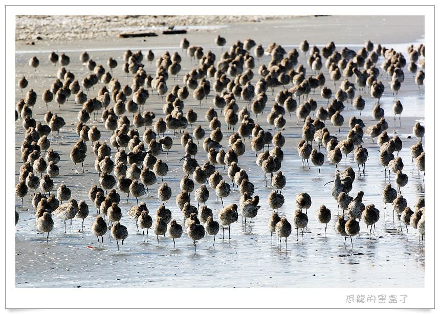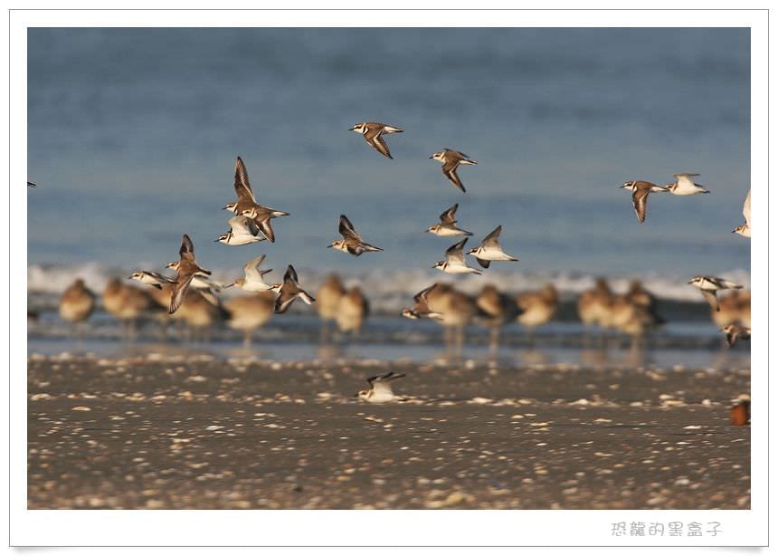 這是沙灘最熱鬧的時候,不斷地有小群的水鳥陸續飛入。牠們隨著潮水不斷往岸邊移動,一直等待滿潮才會整個安靜下來。