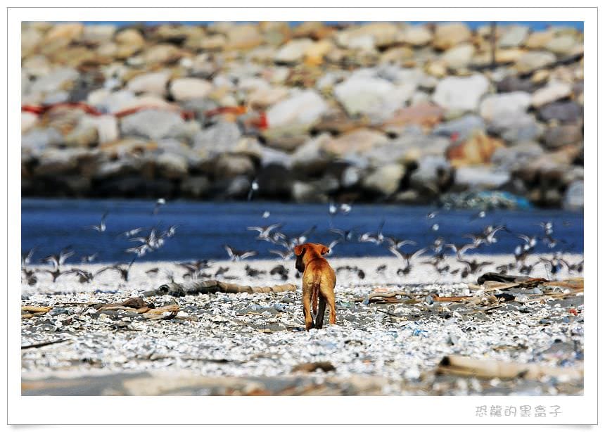沙攤有不少遊蕩的野狗,天空不時有巡弋的猛禽,有時還會有人下到灘地採集。