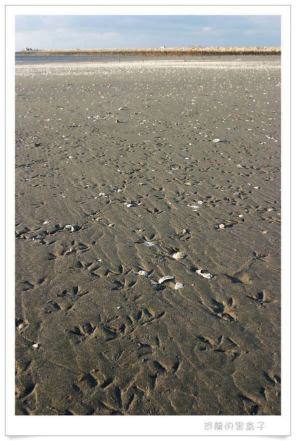 大杓鷸何時離開的我並不知道,我有一次拍完之後轉到漢寶,回來經過彰濱突然想再看看牠們,夕陽漸弱的沙灘上除了佈滿那竹葉般的趾印之外,已經不見任何水鳥,只有一隻角眼沙蟹獨自漫步著。我望著廣大的潮間帶,大杓鷸想必在某處,將長長的喙插入軟泥中,優雅而辛勤的覓食著。