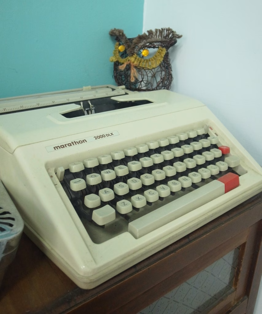 With time to kill, I took a closer look around this cozy little living room. The sign for “Maillard reaction Bakery” was taped to the inside of the door, while an old motorbike leaned casually against the wall, reminding me of the time Xiao Hao picked me up at the Chiayi train station – he looked just like a pilot straight out of a Studio Ghibli film. Nearby, an old second-hand commercial oven stood ready, the very “incubator” for his bread and dreams. My eyes wandered over the eclectic collection of items scattered around: a vintage typewriter, a retro couch with a handwoven orange cushion, and finally, a carefully restored brown alarm clock, ticking softly in the corner. As I moved toward the corner window, I found a cluster of small green potted plants surrounding an elegant glass cake stand.