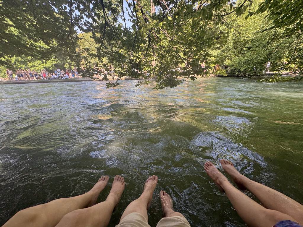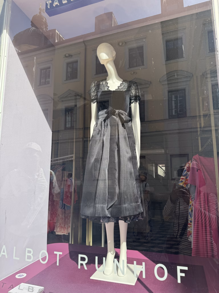 2025-0720這天,慕尼黑市政廳剛剛退去前夜的樂音與璀璨,尚未拆除完畢的鷹架仍描繪著戶外演奏會的舞台輪廓。因為假日市集被取消,我們得空隨意在街頭晃蕩。典雅的街道建築搭配時尚櫥窗,人們隔著玻璃看商品,也折射出一個截然不同的世界。