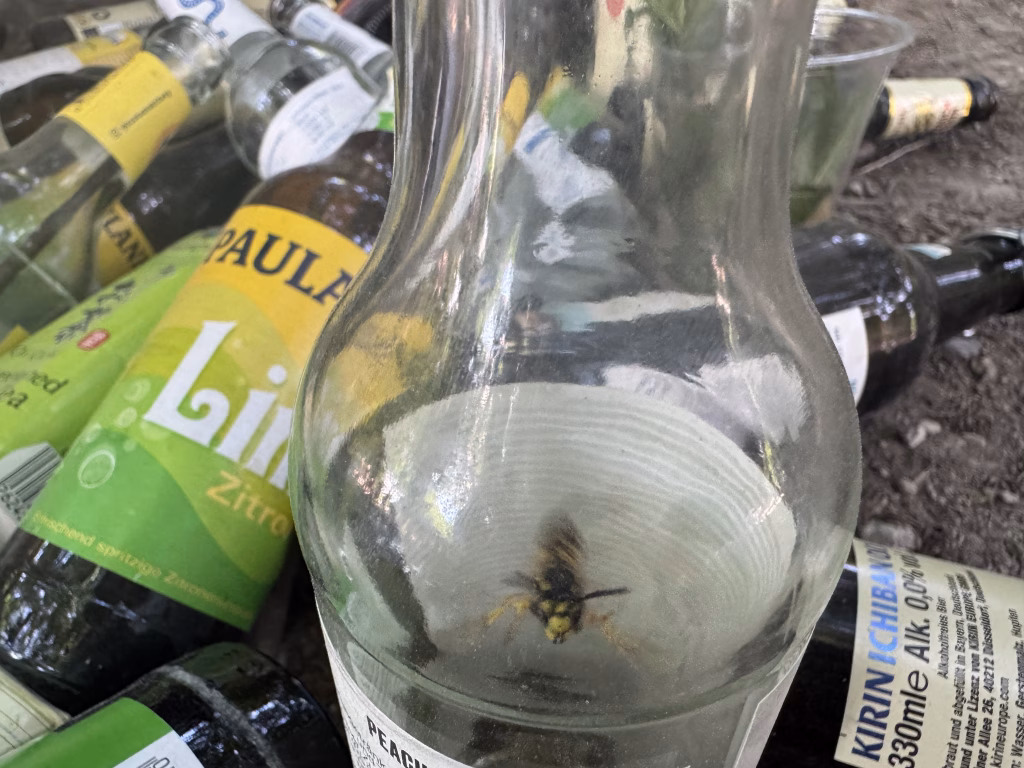 我閃電「自然觀察」完後,便將酒瓶傾斜,在胡蜂脫困的瞬間,突然恍然大悟:「這命不該絕的德國胡蜂,竟有著和潛龍相似的人間品味...」