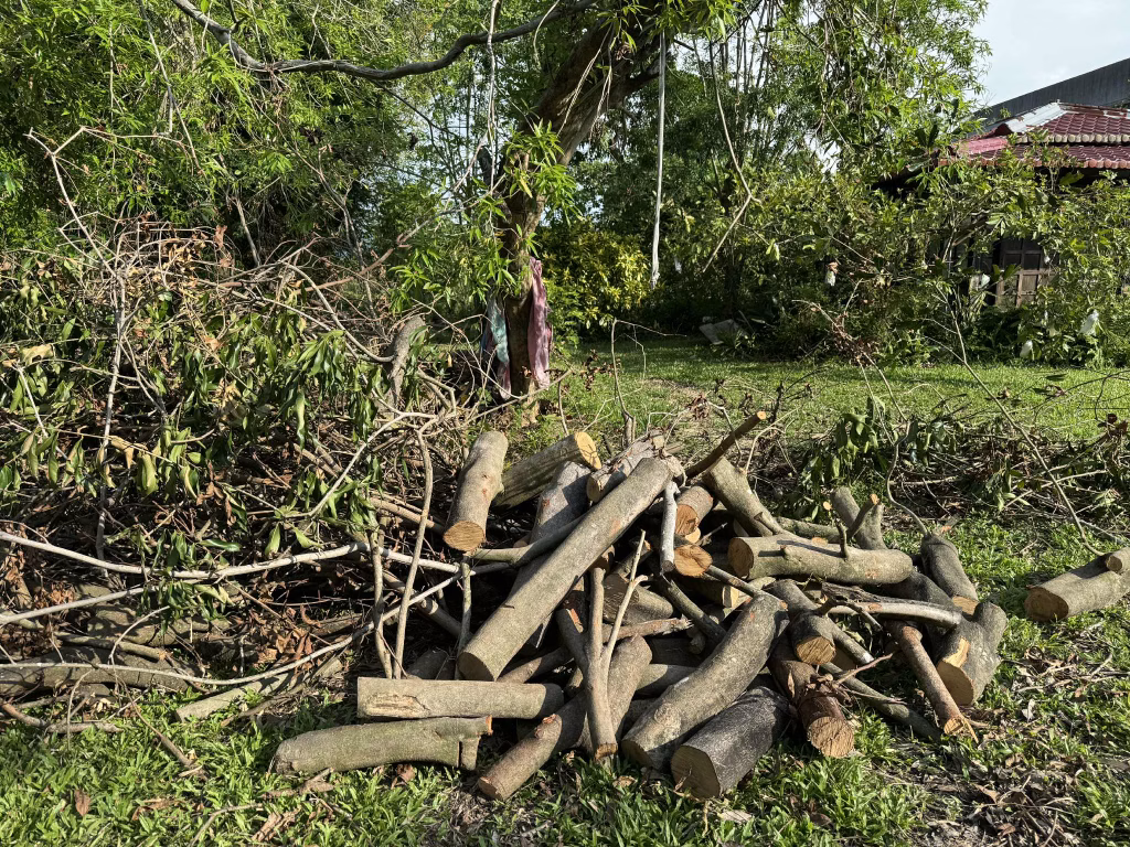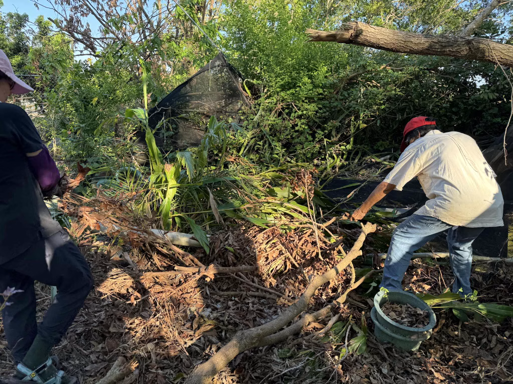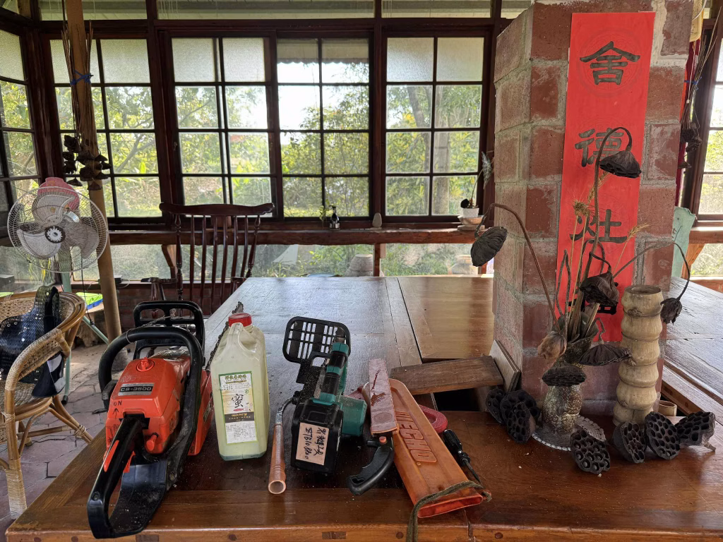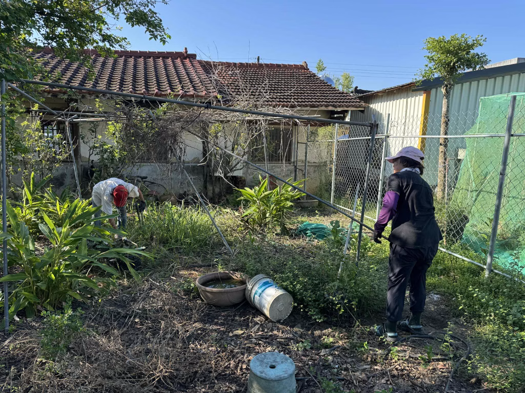 2025-0818這週氣溫遊走在34-36度之間,一早麗明和我趕往美如阿姨家,抵達白河時已近中午,夏日暑熱撲面烘烤令人難以招架。眼見三合院的主屋結構並無嚴重損毀,院中被強風摧折的斷枝倒木,在先頭部隊三舅和志欣的親友團大力相助處理下,已清理出整齊的空間。我們和小狗黑金躲在新裝有冷氣的涼亭中,一邊喝茶一邊擬定作戰策略。