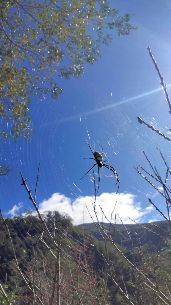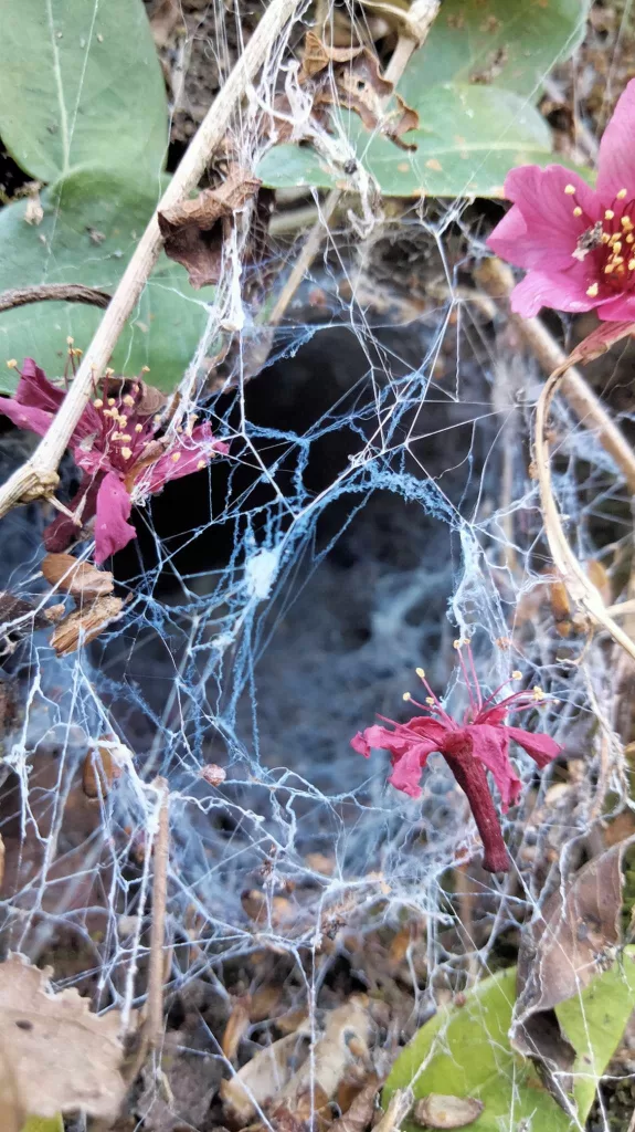 我問:「可以告訴我,妳為什麼這麼喜歡拍攝蜘蛛網?它哪兒吸引妳?妳都在哪裡拍的?什麼時候拍的?」