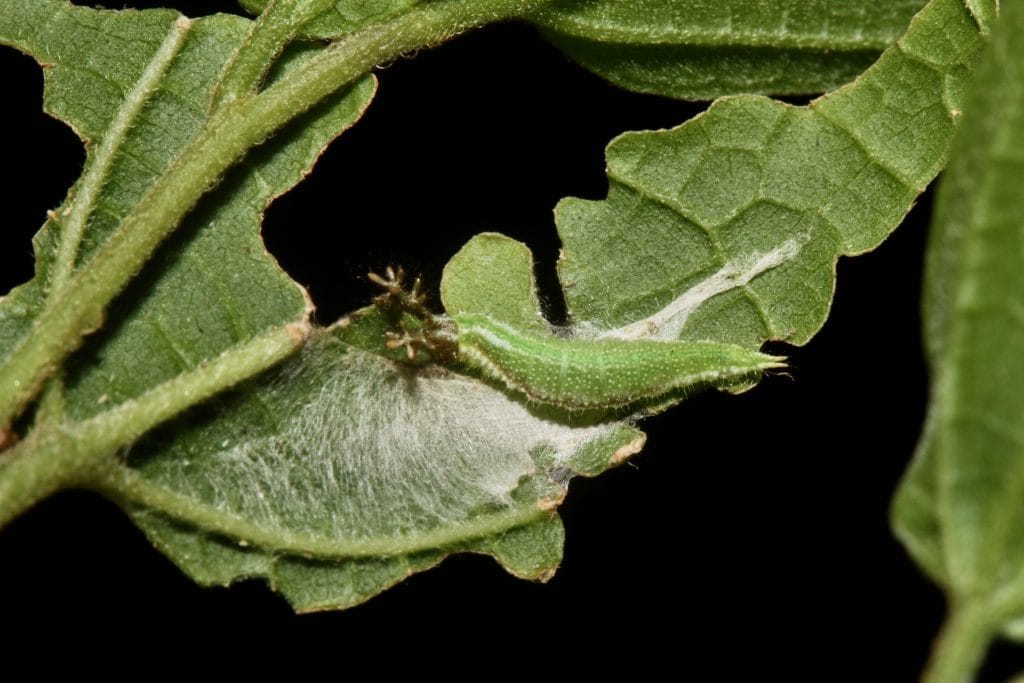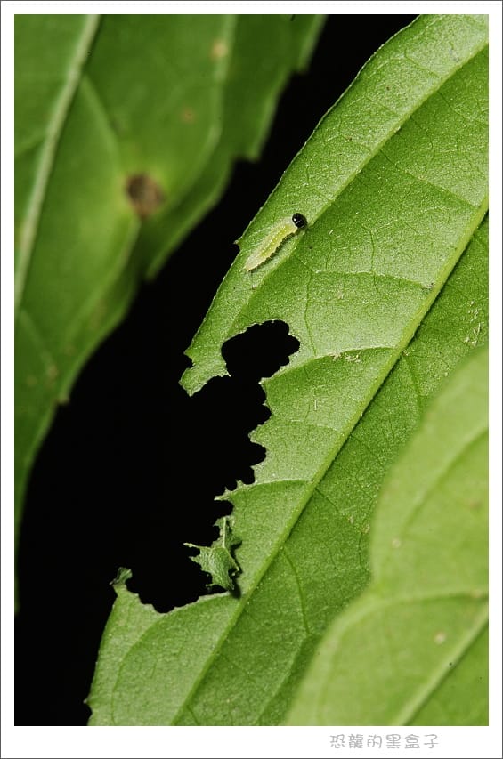 他們習慣躲在葉背,沿著葉緣啃食出不規則的生命曲線。
