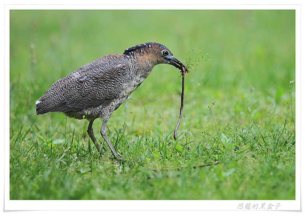 黑冠麻鷺覓食的影片,其中與蚯蚓拔河的畫面非常有趣。