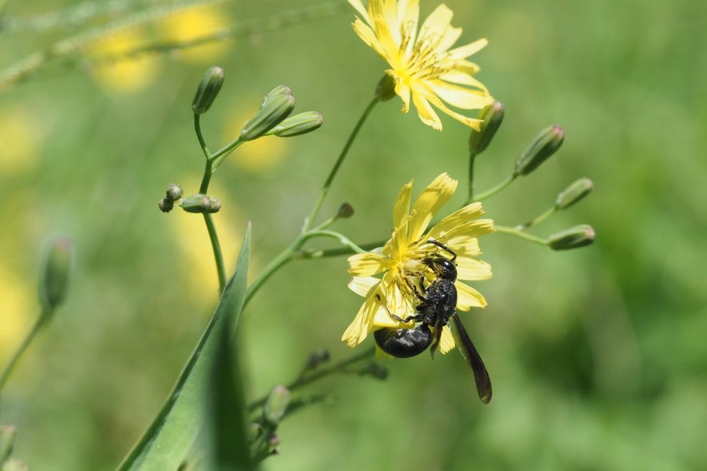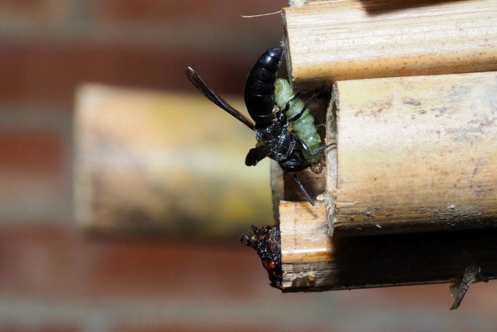 除了捕捉蛾類幼蟲可以控制害蟲數量之外,成蜂也會拜訪多種花朵,是很好的授粉者。