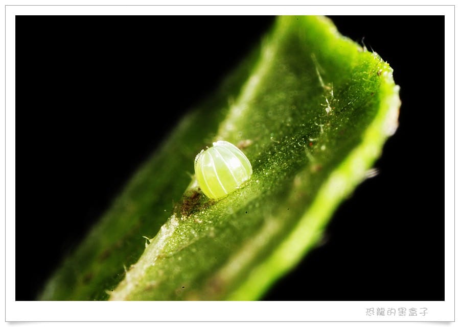 說起琉球紫蛺蝶產卵的低調,我曾經在清大蝴蝶園看過一次,母蝶鬼鬼祟祟的低飛,似乎就降落在地面上。卻見她不慌不忙往旁邊一挪,腹部勾在一株才剛發芽的小草上,然後若無其事的飛走了,看似輕描淡寫其實另有蹊蹺,一顆淡綠色的卵已然託付於葉下,這丁點大的葉片夠吃嗎?我連它是什麼植物都看還不來呢。
