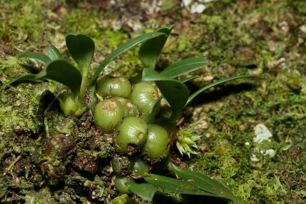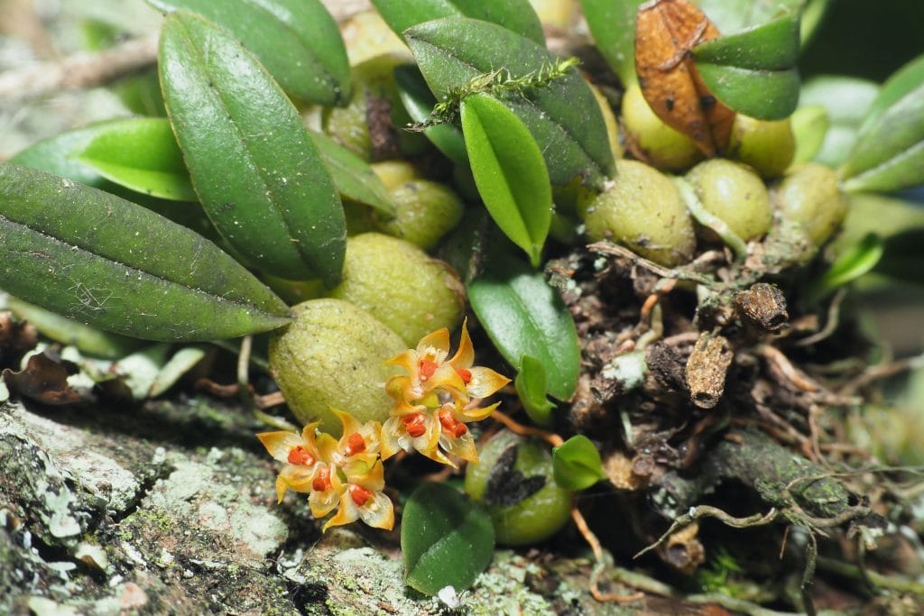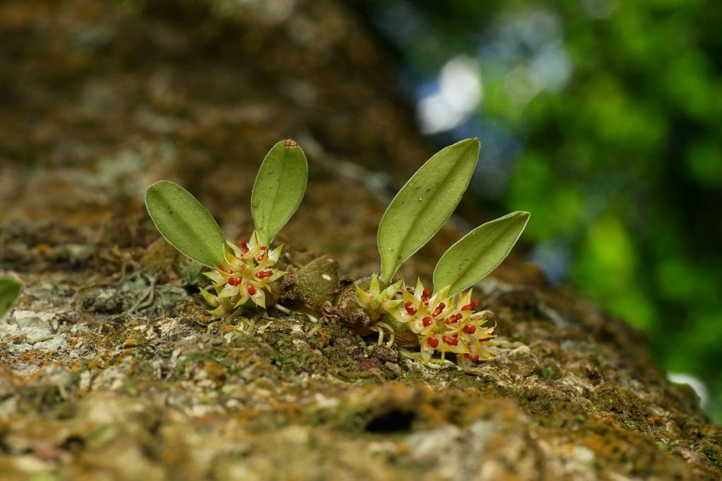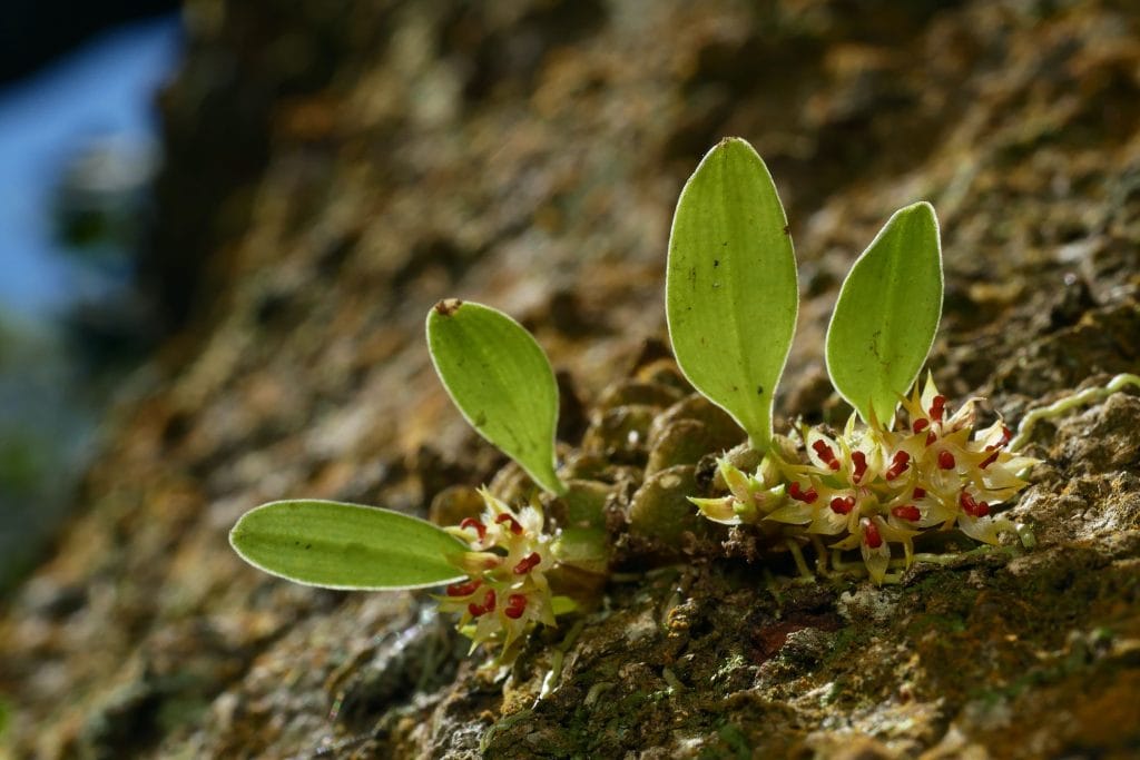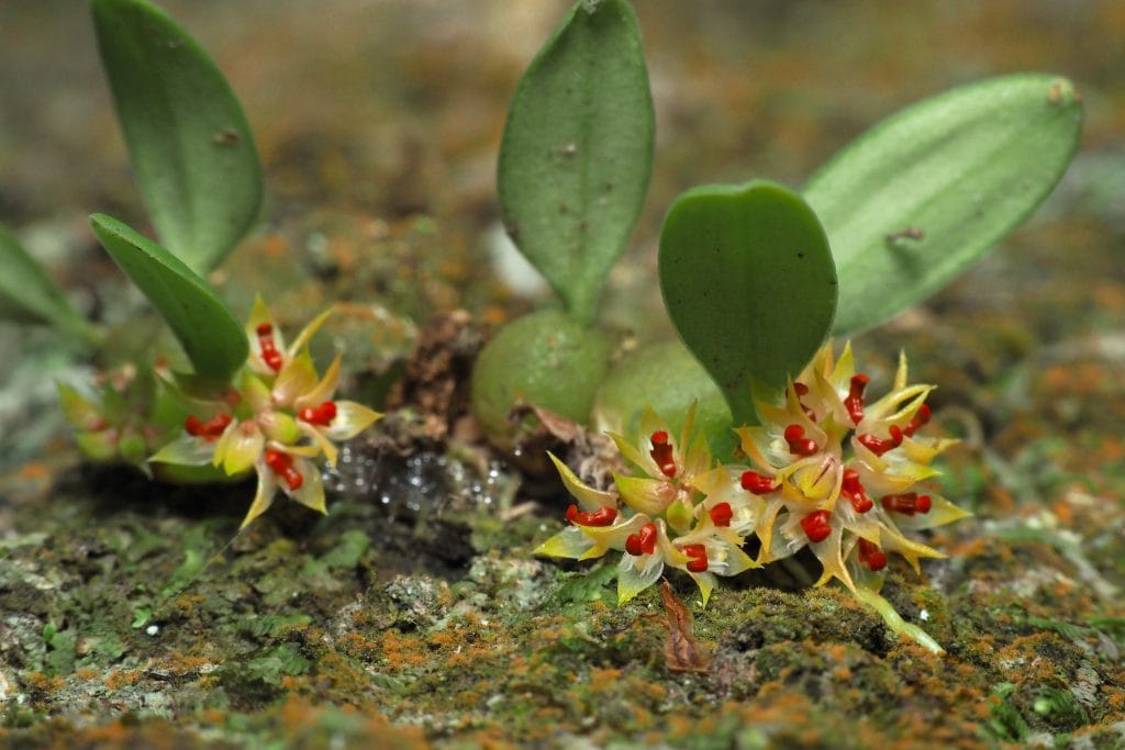 紅心豆蘭屬於蘭科豆蘭屬的小型豆蘭,分布於中海拔的雲霧森林,是賞蘭人可遇不可求的夢幻蘭種。開花數目雖然多但是花朵非常迷你,整個花序還不及小指頭大小,不過鮮紅的唇瓣非常明顯,也是中文命名的由來。
