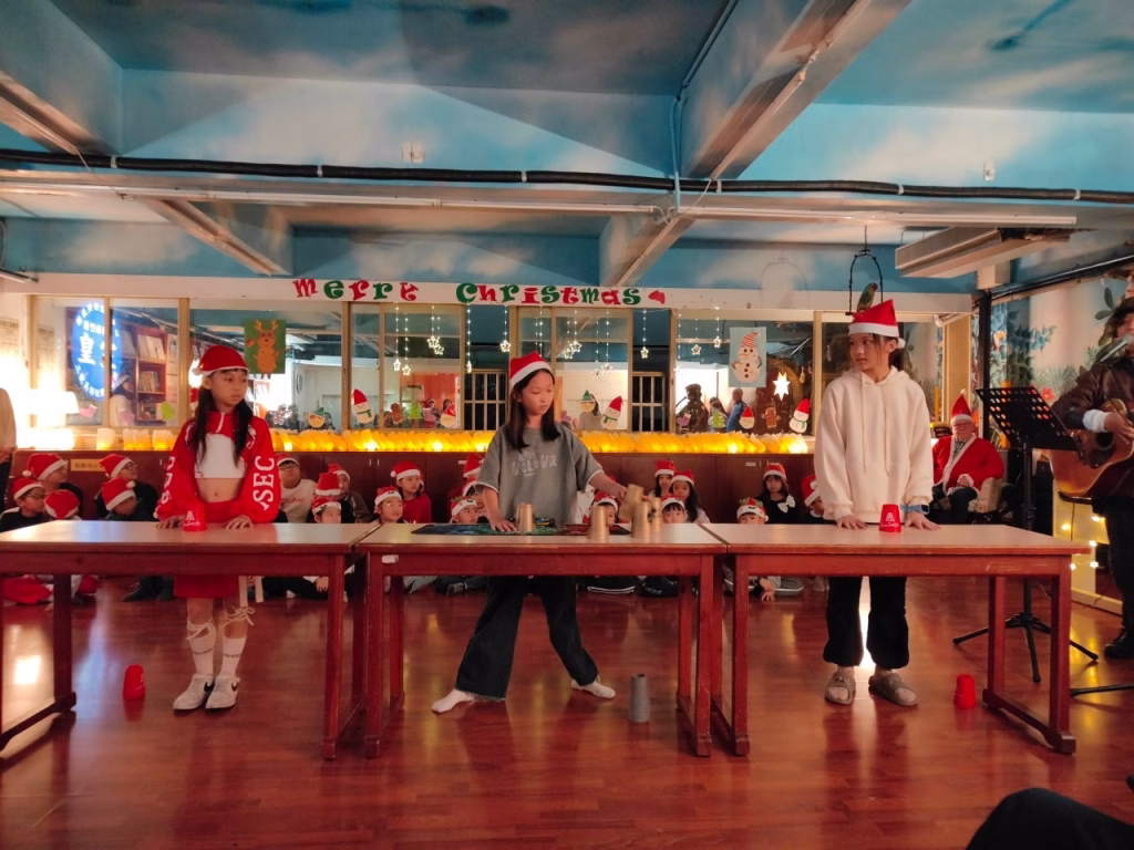 一年一度的耶誕節,是孩子們最期待的節日,歡樂的氣氛正適合舉辦感恩及迎新活動。此次皇室美語為1至6年級的孩子們籌備了精彩的表演活動,例如:團體唱歌和跳舞、師生個人舞表演、三人疊柸和情歌王子的深情演唱。