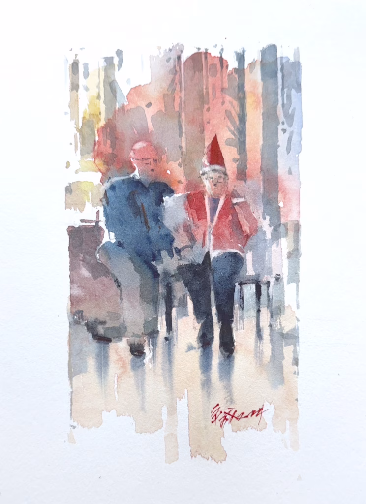 而這位遠從德國漢堡來的聖誕老公公,也獲得了水彩畫家揮毫贈畫。這份遠渡重洋的愛和赤子之心,藉由語言、歌聲、舞蹈、繪畫的分享,與大家共渡了溫馨的一天和難忘的回憶。