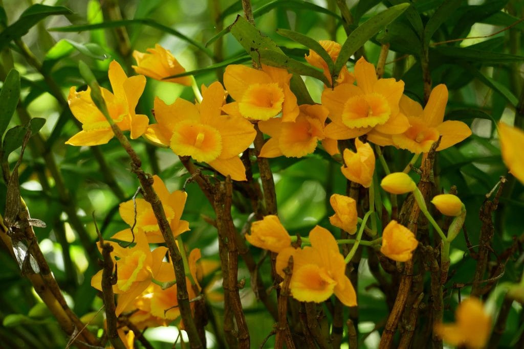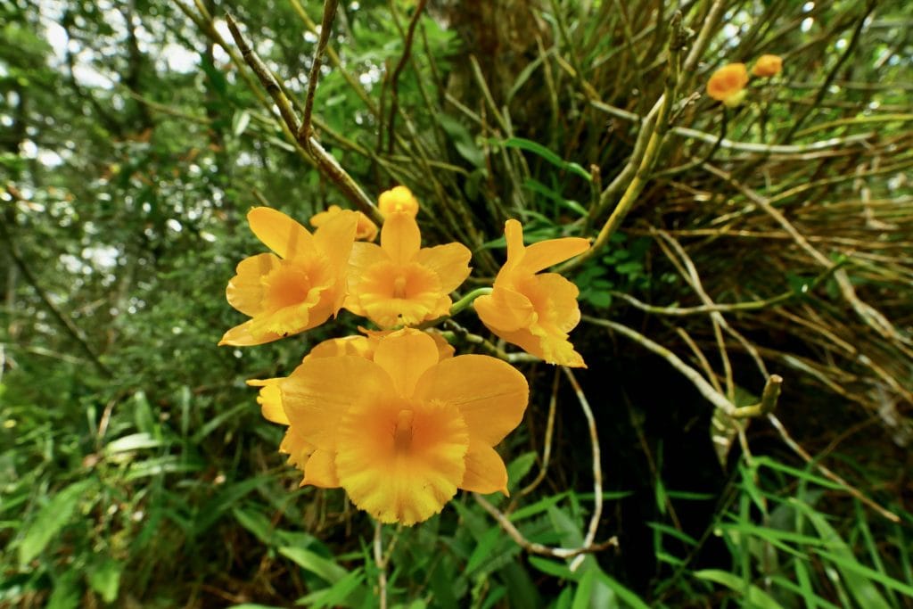 金草蘭開花時,鮮豔的金黃色和碩大的花朵,當數百朵同時盛開時,立刻為翠綠的森林抹上明顯的金色色塊,不過由於高度的關係,往往只能遠觀無法近距離欣賞,只能以長鏡頭聊表敬意。