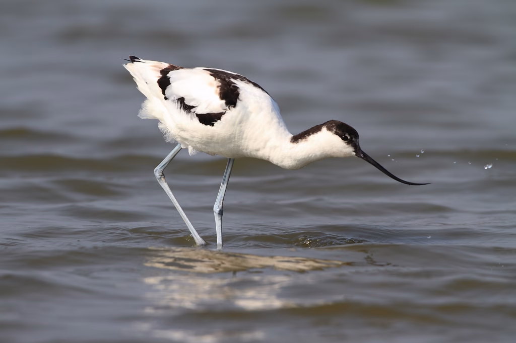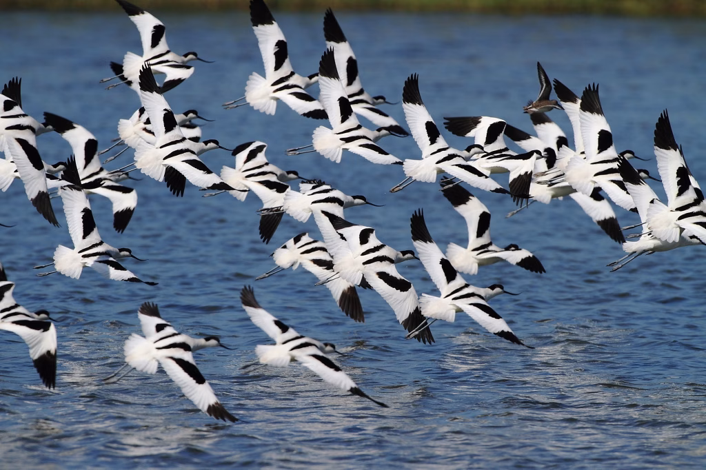 反嘴鴴在北部較不常見,微向上翹的黑色尖嘴是其特徵,近年來偶而在金城湖可見小群。