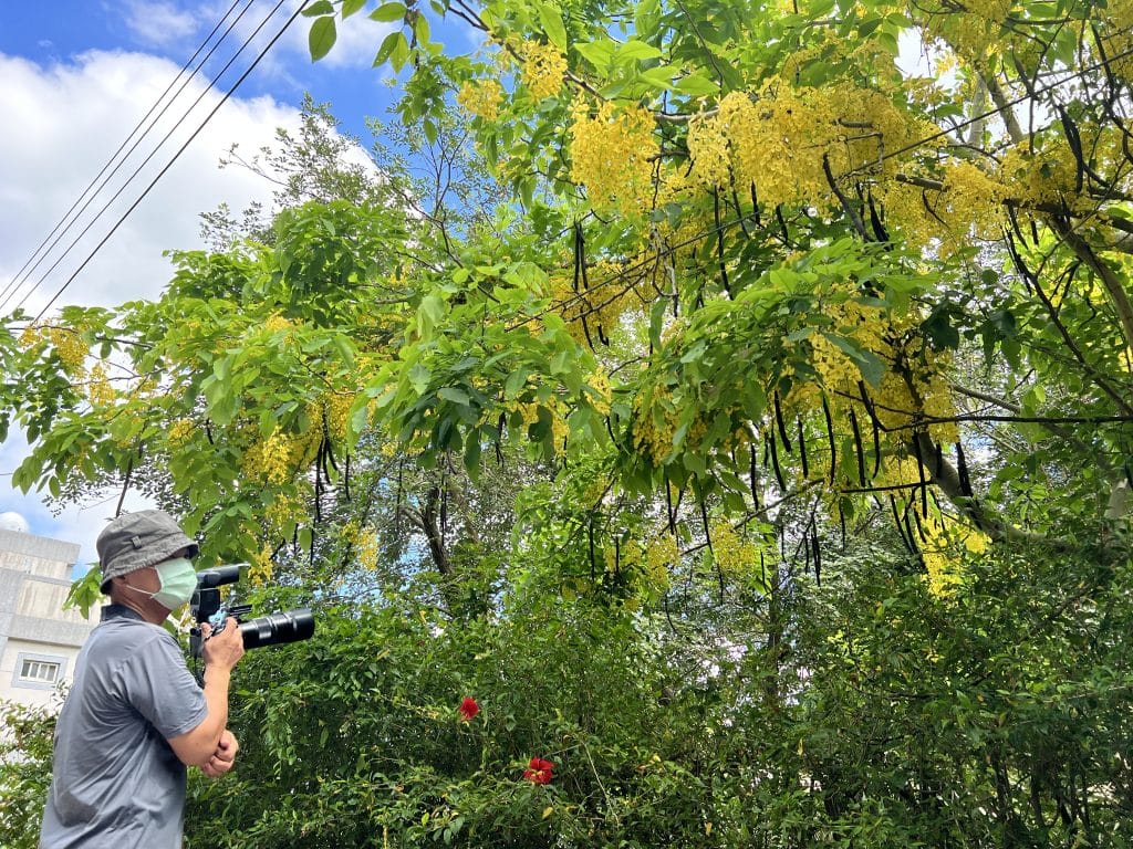 五月中旬時序進入立夏,氣溫逐漸上升,許多的植物陸續開花,而屬於夏季的樹花當屬火紅熱鬧的鳳凰木,和一樹金黃的阿勃勒了。兩種植物開花時大面積的鮮艷色塊,讓人立即感受到夏日火辣的氣息。