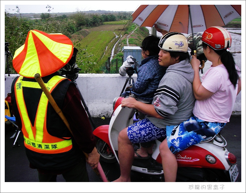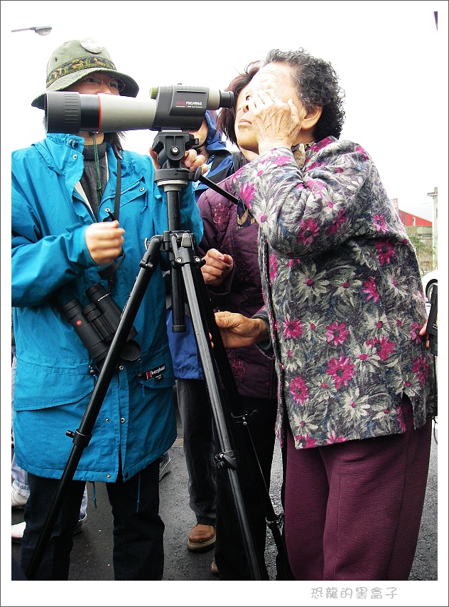 丹頂鶴的飛臨在星期六下午被鳥人發現,星期天上新聞吸引了大批的觀賞人潮。我是昨天晚上看到網路上的消息才知道,今天趁著颱風來臨之前去看看,風雨大了些,人也少了些。雖然只知道大約的位置,但是圍觀的人車和拍攝的相機鏡頭,很快就讓我們找到了地點。 除了拍攝觀察的人之外,也有當地的居民來湊熱鬧,看著七八十歲的阿婆瞇著眼賣力地看著望遠鏡 ,突然有種莫名的感動。