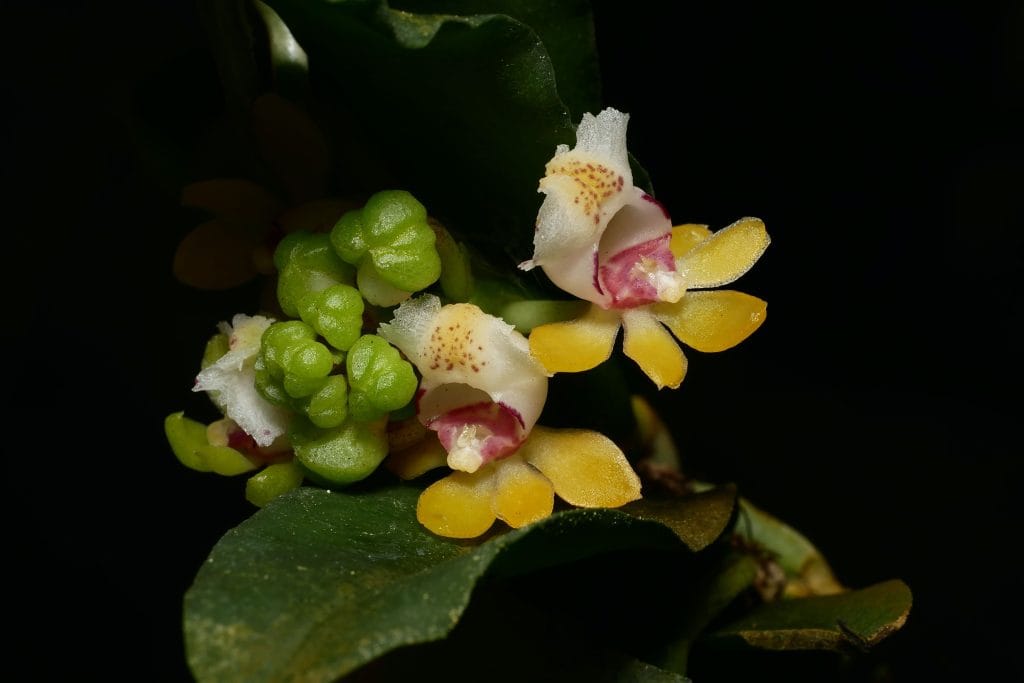 「松蘭屬植物,造型相當特別:唇瓣內彎形成一囊袋,袋口下延成裙襬,此裙襬在植物學上稱為「舷」。 舷是松蘭屬相當重要的特徵。」資料參考自福星花園網站。