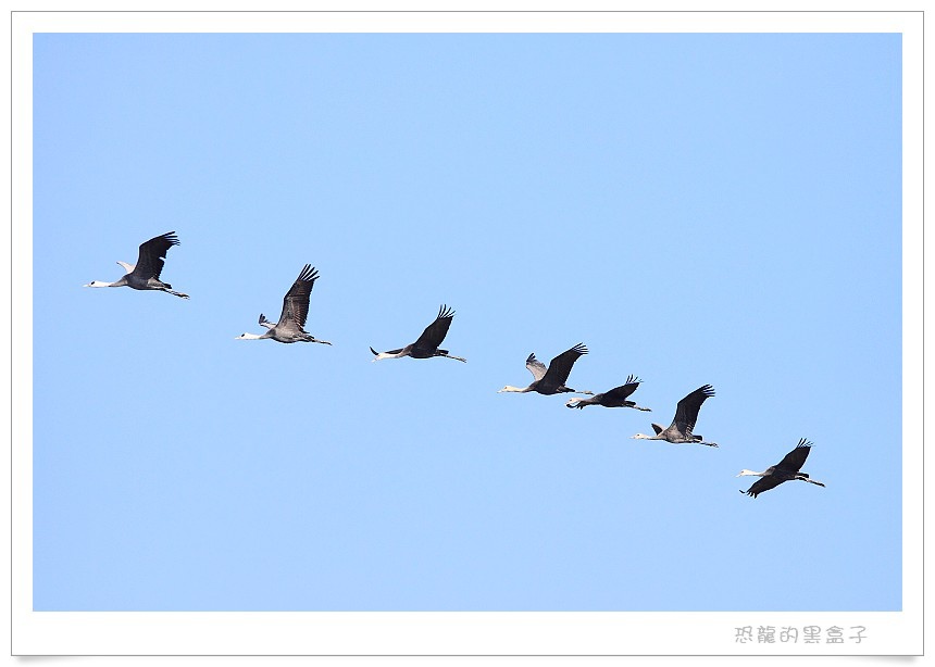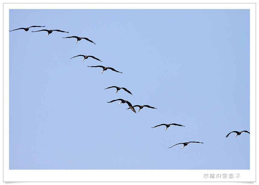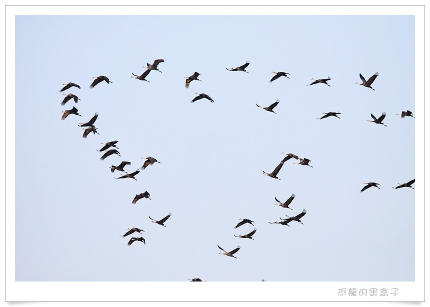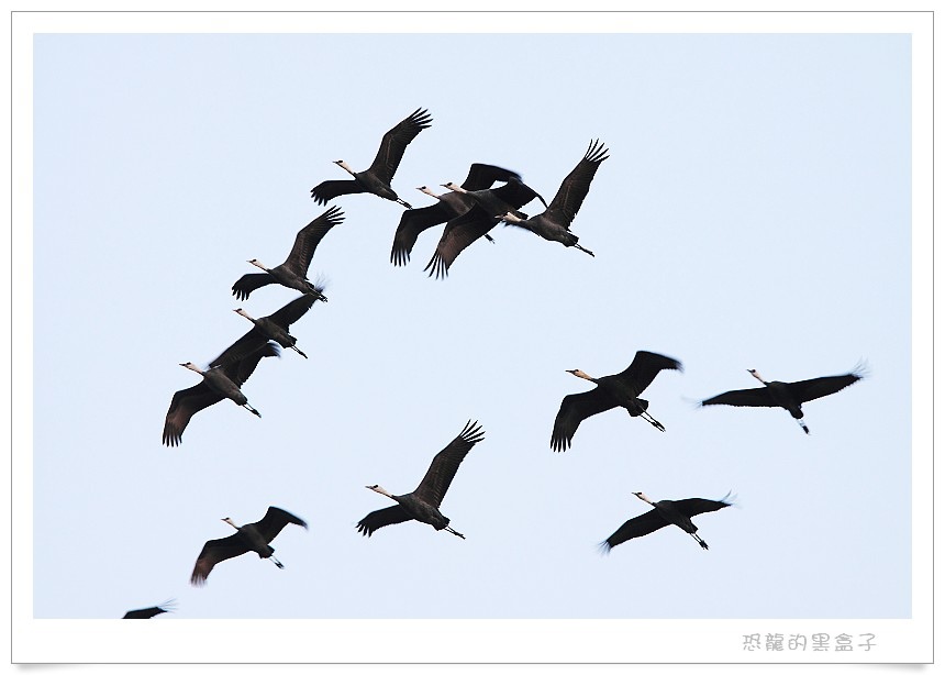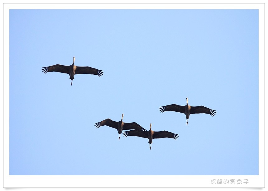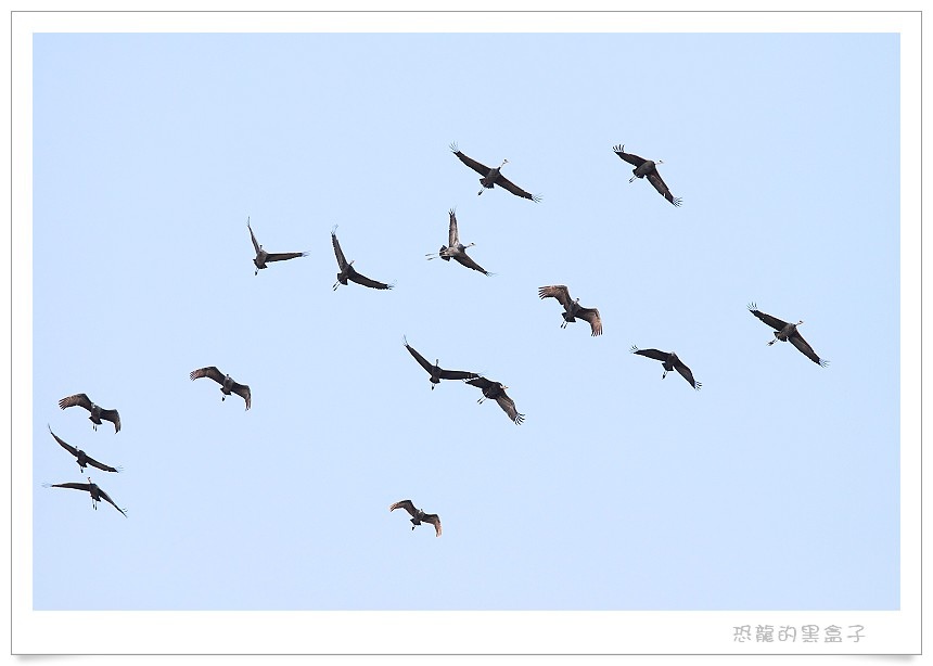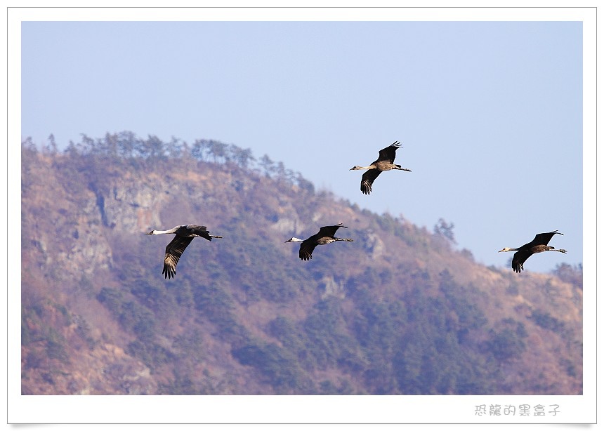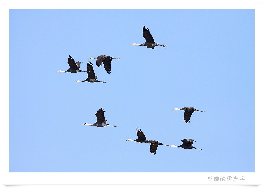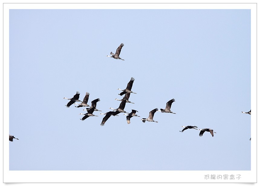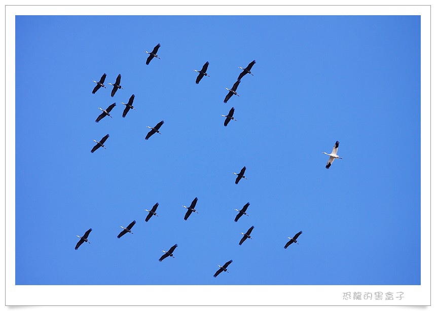 屬於極度瀕危的物種,全世界的數量約2000隻。牠雖然混雜在一群黑色翅翼的白頭鶴之中,仍舊非常明顯,我們的鏡頭跟著牠左右盤旋,忽遠又近不知殺了多少記憶體,即使沒有拍到特寫,不過驚心動魄的感覺讓人一開始就非常興奮,原本只是想進來隨便逛逛的我們當下決定要留下來,希望能有更多驚喜。